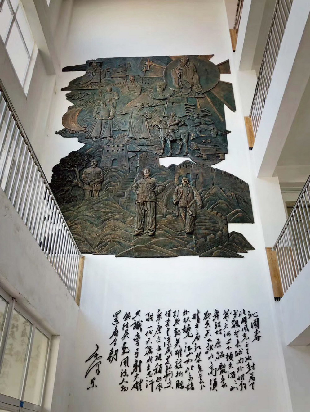 天津津南雙港中學(xué)大廳鍛銅浮雕壁畫(huà)