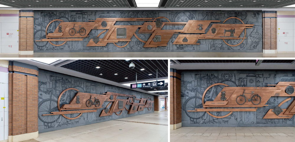地鐵六號(hào)線工業(yè)文化主題站-紅旗南站《輕工杰作-引領(lǐng)時(shí)代》浮雕墻